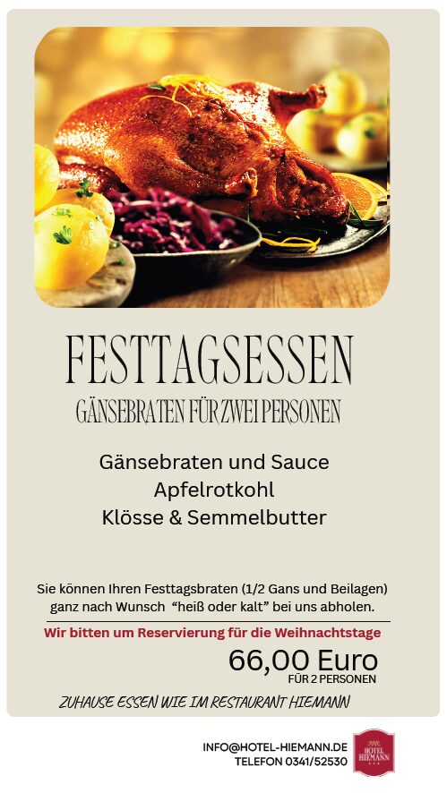 Genießen Sie die Weihnachtstage ganz entspannt mit unserem köstlichen Gänsebraten für zwei Personen,